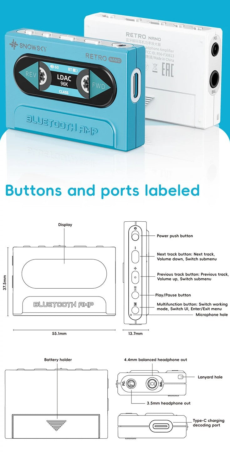 Snowsky / FiiO RETRO NANO – Bluetooth DAC та підсилювач для навушників (LDAC, aptX Adaptive, 3.5 / 4.4)